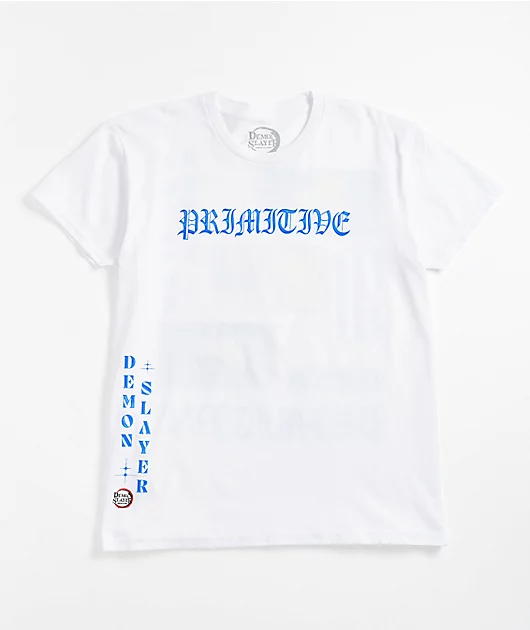 Primitive Skateboards and Demon Slayer come together to introduce the kids Thunder t-shirt in a white cotton construction. The youth tee features a unique design with Primitive logo script across the chest in blue, and Demon Slayer logo script along the l