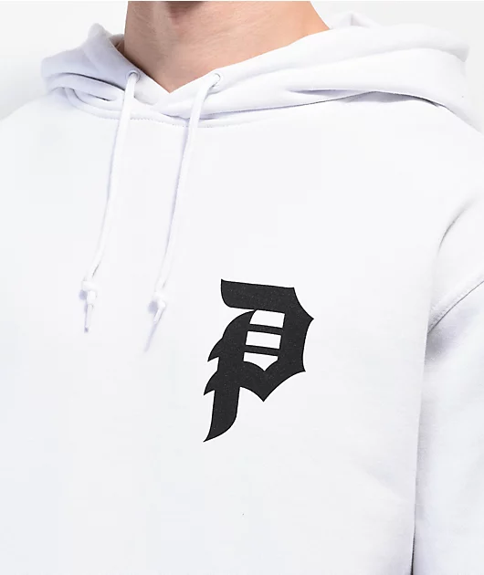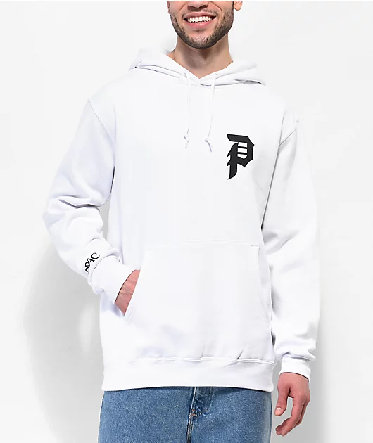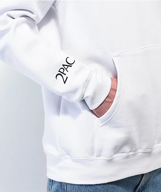 Primitve x Tupac come together to bring the Smoke hoodie in a crisp white colorway, displaying the Primitive \”Dirty P’ left of chest and the graphic of Tupac from one of his many popular albumns as he smokes a cigar. This hooded sweatshirt offers storage