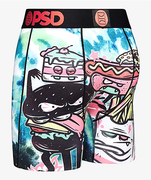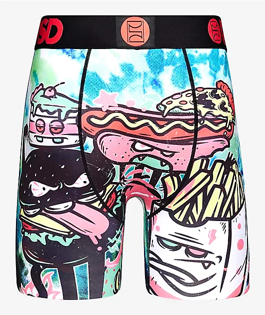 The PSD Grubz boxer briefs feature cartoon fast food characters throughout, with trippy undertones. The ultra-soft microfiber construction offers a comfortable fit, while a thick elastic waistband ensures minimal irritation.