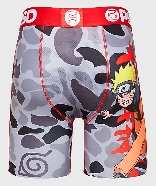 Sprinkle a little shinobi-inspired style into your underwear drawer with the Run camo boxer briefs from PSD x Naruto Shippuden! These boxers come with sublimated greyscale graphics throughout, and a screen-printed Naruto mid-run on the left leg for some s