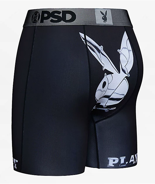 These Chrome boxer briefs from PSD x Playboy come in a silver and black construction with a chrome bunny sublimated onto the front for bold branding. These comfy boxer briefs are perfect for all day wear with a breathable, athletic construction adorned wi