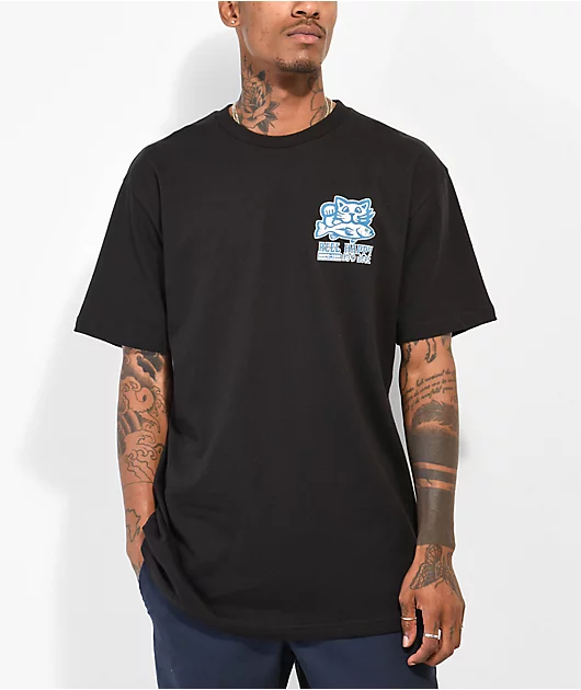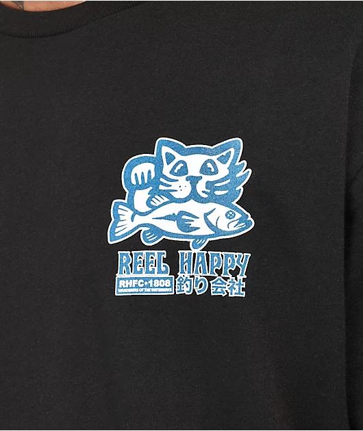 From Reel Happy Co. comes the Biggie t-shirt in a black colorway. This shirt boasts screen-printed logo script at the left chest, and a large graphic at the back of a anime woman holding up a large fish.