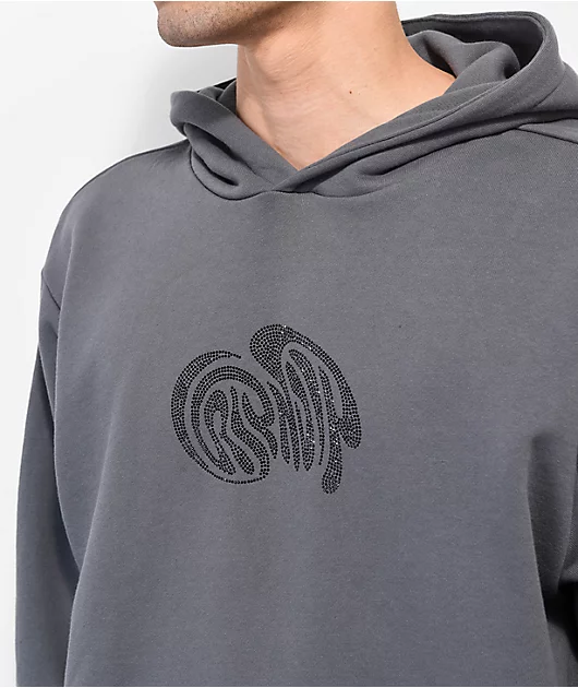 The Beauiful Trip hoodie from RIPNDIP comes in a grey colorway with silver rhinestones spelling out the brand name on the front, while the back boasts a woman’s silhouette in those same rhinestones. This hoodie comes in a classic pullover construction wit