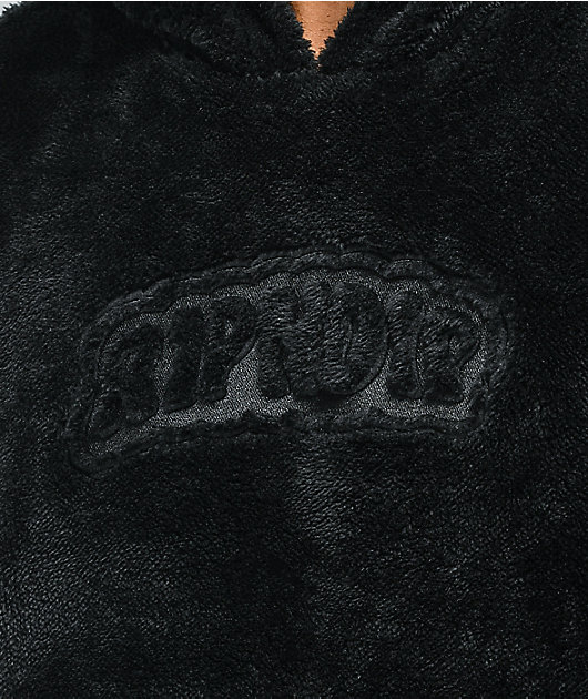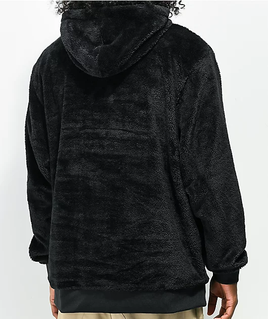 Add some cozy faux-infused flair to your outfit with the Bubble black sherpa hoodie from RIPNDIP. This pull-over hoodie is constructed from a black, faux-style material, making it an extraordinarily comfortable addition to and ‘fit, and an embroidered RIP