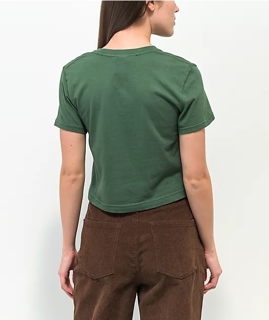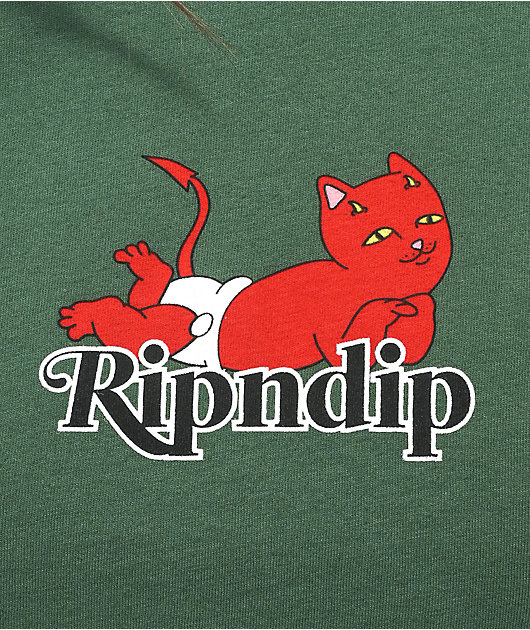 The Devil crop t-shirt from RIPNDIP comes in a sage colorway with a trendy baby tee silhouette. Screen-printed on the front of this crop top is a diaper-wearing devilish Nermal laying atop RIPNDIP script.