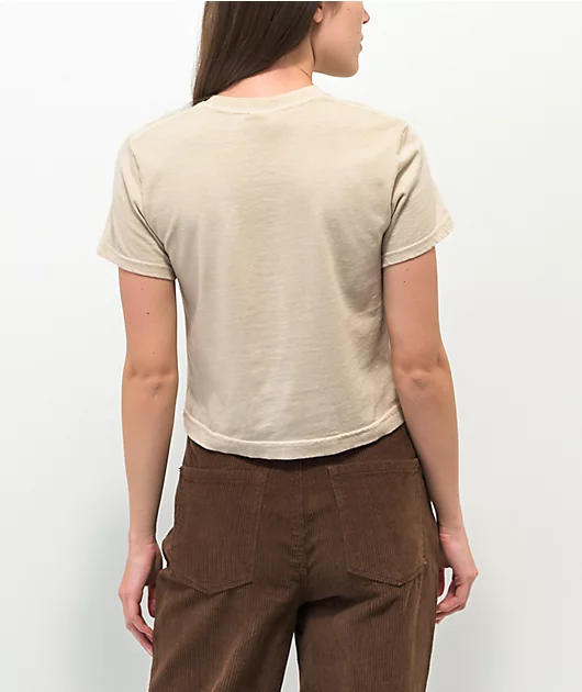The Limbo crop t-shirt from RIPNDIP has a tight, cropped silhouette and comes in a cream colorway, boasting a screen-printed graphic of Devil Nermal tempting Angel Nermal. This baby tee is made from soft and breathable cotton and has a tagless collar for