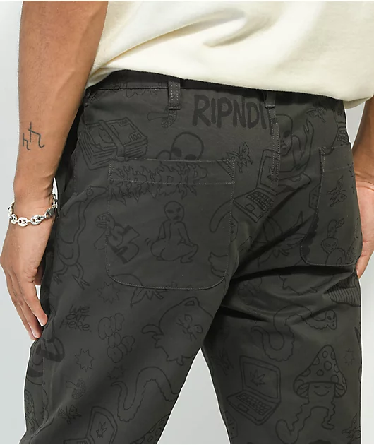 From RIPNDIP comes the Nerm Doodle chino pants that come in a dark brown colorway and feature black RIPNDIP doodles throughout. The pants are constructed from a soft and thin cotton, and have a relaxed, straight leg fit with a standard chino 4 pocket conf