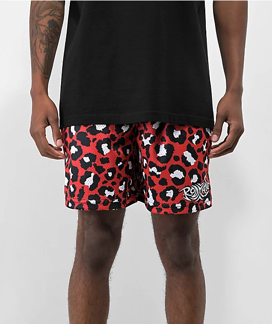 Inspired by the Hall of Fame style icon, the Cheetah mesh basketball shorts from RODMAN BRAND add a vibrant accent to any outfit. A sublimated red cheetah print is sublimated throughout, as a stylized brand logo is situated above the left leg opening. Wit