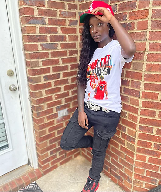 Slam a fresh new tee into your rotation with RODMAN BRAND Dunk white t-shirt. This wild tee features the legend Dennis Rodman dunking on himself on the center chest, proving that even he can’t guard against his own slick moves.