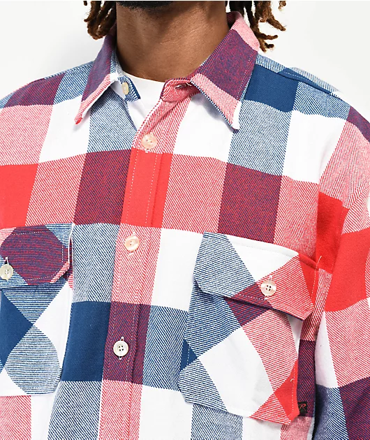 Rothco Heavy Red, White & Blue Plaid Flannel Shirt