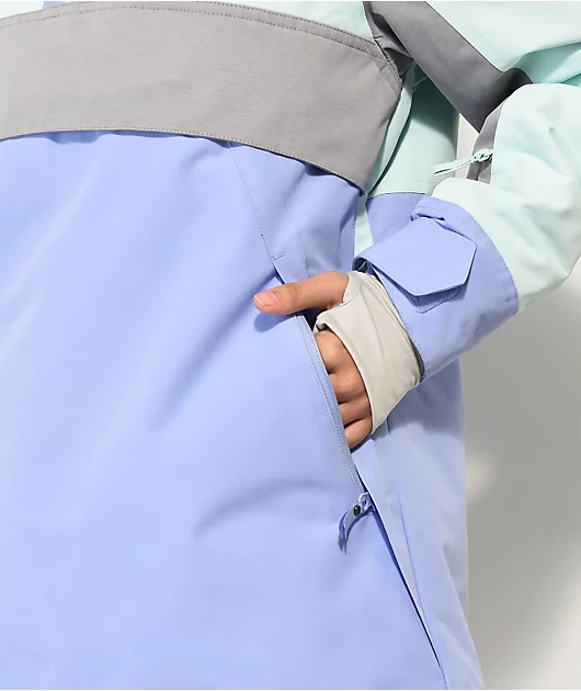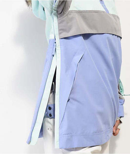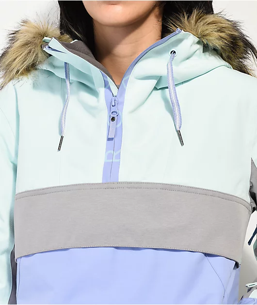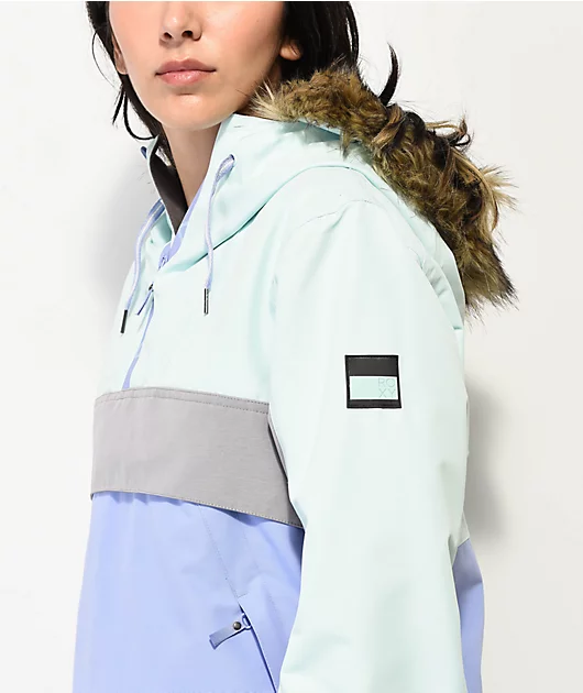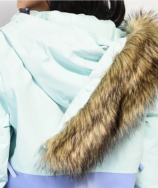 Roxy brings the Shelter snowboard jacket in a fair aqua colorway, featuring a faux fur lined hood that is also water resistant. This winter coat is eco conscious with recycled fibers and being PFC free, while still maintaining all you’d expect from a Roxy