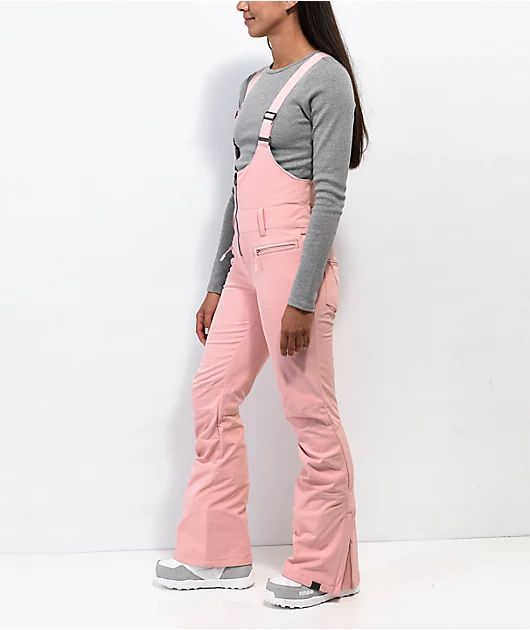 The Roxy Summit bib snowboarding pants come in a mellow rose pink colorway, with a skinny fit. With a stretchy soft shell design, the pants boast water-resistant 15K DryFlight technology, while brushed back fleece taffeta lining offers cozy warmth. The bi