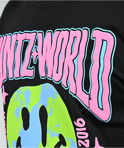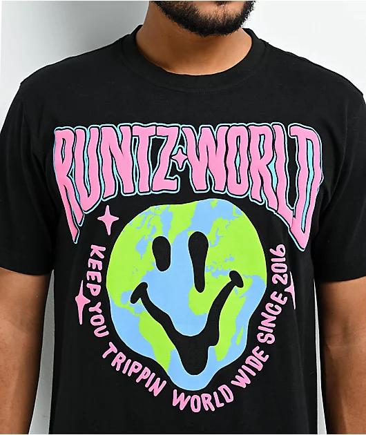 Made of 100% cotton for all day comfort, the Trippy World t-shirt from Runtz boasts a puff printed graphic of a smiling, melting earth surrounded by script reading, \” Runtz World | Keep You Trippin’ W