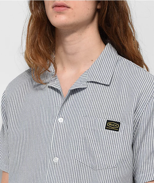 RVCA Dayshift Blue Stripe Short Sleeve Button Up Shirt