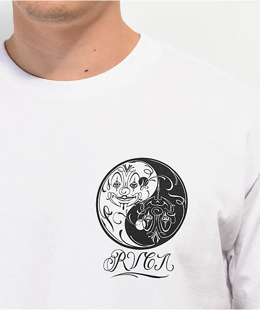 The Mister Cartoon Yin Yang t-shirt from RVCA is made of 100% cotton and comes in a white colorway with a screen-printed, clown face yin yang graphic on the left of chest and enlarged on the back.