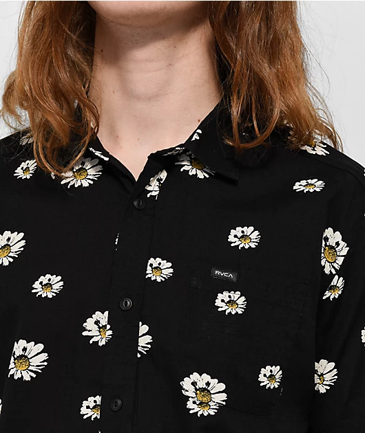 RVCA introduces the Pushin Up t-shirt in a black colorway, offering an eye-catching floral design with screen-printed daisies throughout. This short sleeve button up shirt is made from a woven cotton material, offering a traditional look with a turndown c