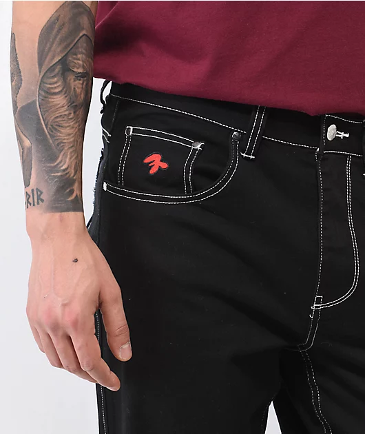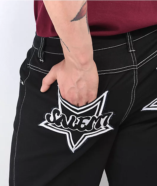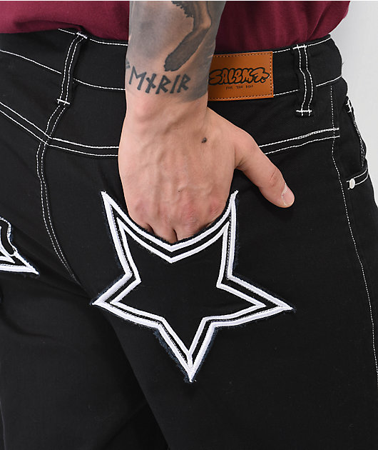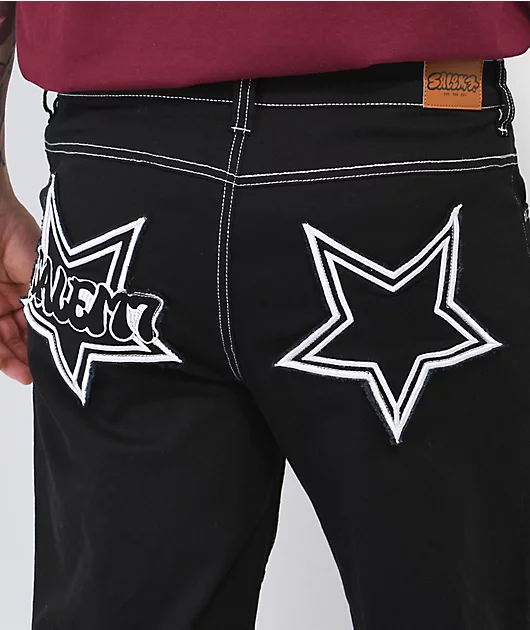 The Pentagram jeans from Salem7 come in a black denim construction with contrasting white stitching throughout and star shaped patches woven onto the back boasting the brand name. These stylish jeans are made of 100% cotton and feature a relaxed, straight