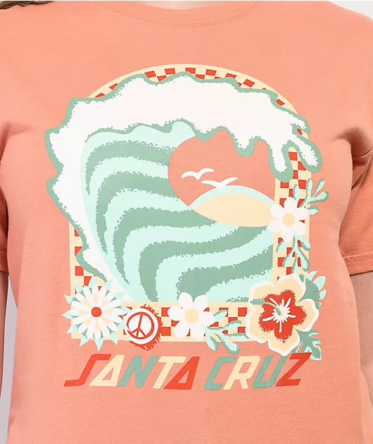 The Free Spirit Wave t-shirt from Santa Cruz is made of 100% cotton and comes in a warm clay colorway with a screen-printed graphic on the front boasting a wave within an archway filled with flowers.