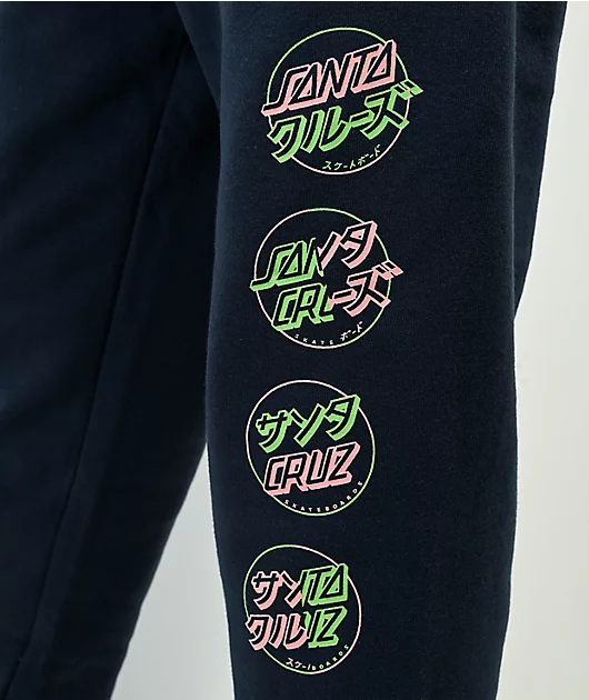 The Outline Stripe sweatpants from Santa Cruz come in a navy colorway with the brand’s Japanese logo printed down the left leg and peach brand script down the right. These comfy pants are made of a soft cotton-poly blend with a drawstring-adjustable waist