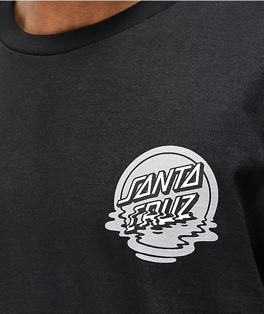 Top off your look with signature skate style with the Santa Cruz Reflection black t-shirt. This relaxed fit tee features matching screen-printed logo graphics on the left chest and back of Santa Cruz’s signature logo script in a reflective water compositi