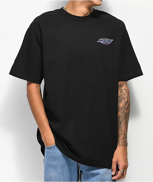 Complete your skate-inspired outfits with Santa Cruz’s Throwdown Dot Black T-Shirt. This garment is made from a classic cotton blended construction and features signature logo script on the left chest and a rendition of the brand’s iconic \”Dot\” emblem on