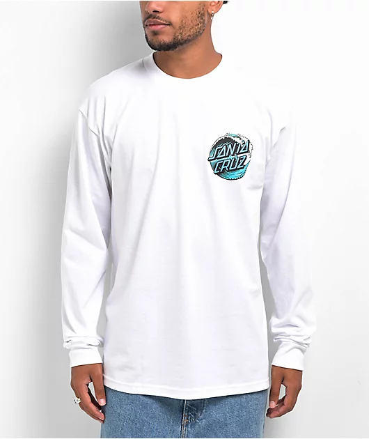 From Santa Cruz comes the Wave Dot long sleeve t-shirt in a white colorway with surf inspired brand logos on the left chest and back. Made from durable midweight cotton, the Santa Cruz long sleeve is complete with ribbed accents for a timeless fit.
