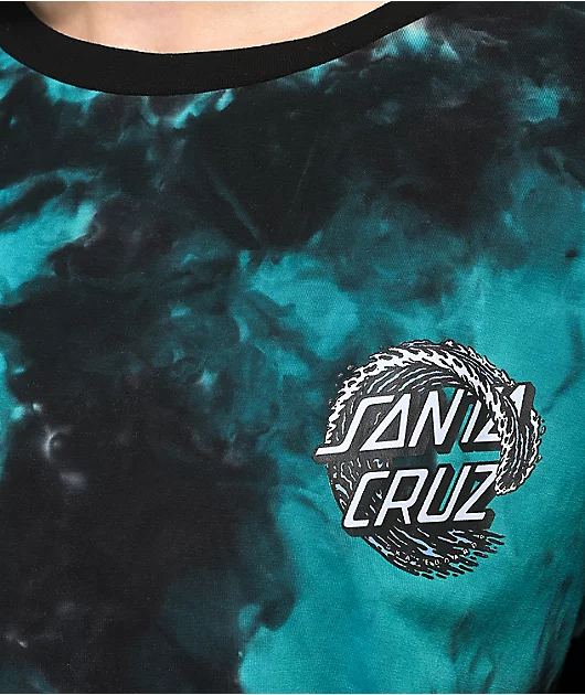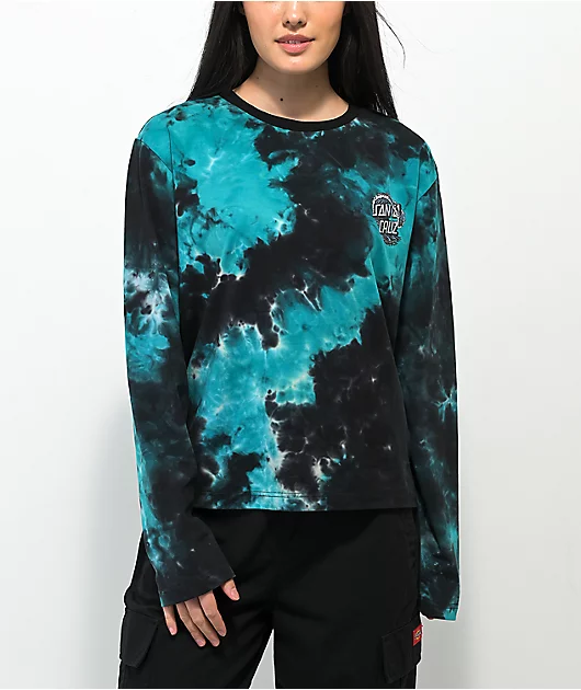 Santa Cruz White Cap Dot Teal Tie Dye Long Sleeve T-Shirt