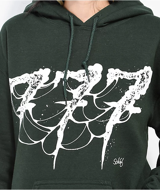 The Make Your Own Luck Schaf hoodie comes in a green colorway with angel numbers 777 screen-printed in white across the front. This hoodie is made of a soft cotton-poly blend and features classic attributes including a drawstring-adjustable hood and a kan