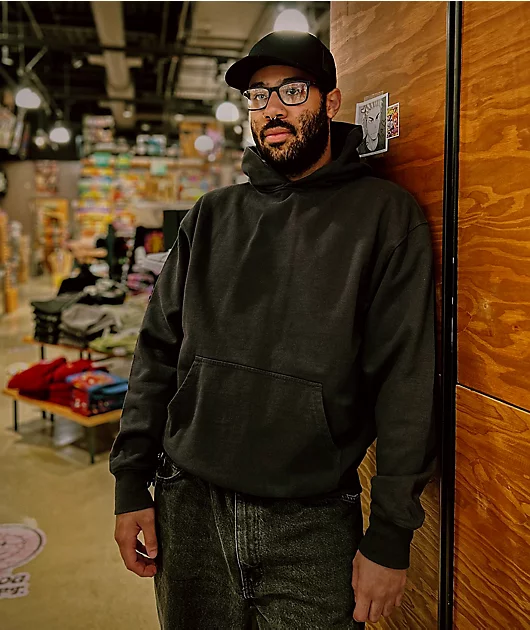 Coming in a stylish oversized silhouette, this Shaka Wear hoodie has been treated with a unique black garment dye process; resulting an ultra-soft, worn-in look. With a brushed interior ensuring comf