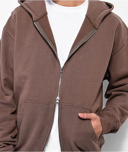 Shaka Wear Garment Dye Mocha Heavyweight Double Zip Hoodie