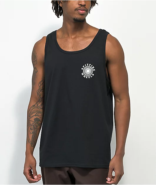 The OG Classic Spitfire tank top is made out of 100% cotton and comes in a black colorway with a screen-printed graphic on the left side of the chest and on the back of a Spitfire spiral logo in white.