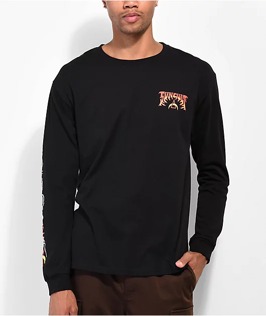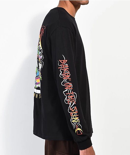The Bakin In The Sun t-shirt from Suncult comes in a long sleeve construction with a black colorway, boasting a flame logo on the left of chest and a screen-printed graphic on the back of a skateboarding zombie. This t-shirt is made of 100% cotton and fea