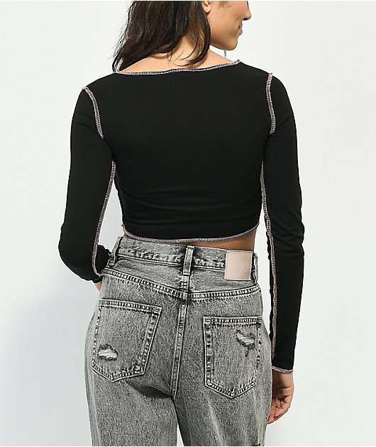 SWIXXZ Dark And Cutesy Black Crop Long Sleeve T-Shirt