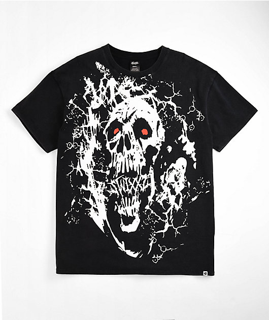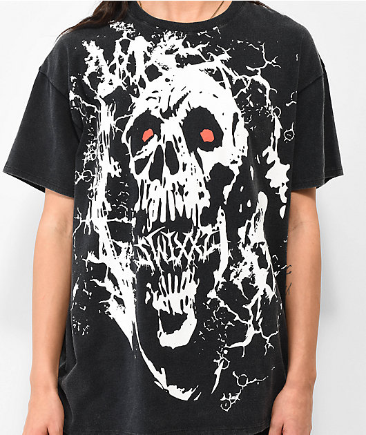 The Grunge t-shirt from SWIXXZ is made of 100% cotton and comes in a black wash colorway with a white screen-printed skull and edgy brand script on the front.