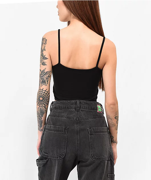 The SWIXXZ Raising Hell tank top comes in black colorway, with a stylish cropped construction. A green skull with horns appears on the chest, with purple flames and heavy metal brand lettering above. Made from breathable lightweight cotton, the cropped ta