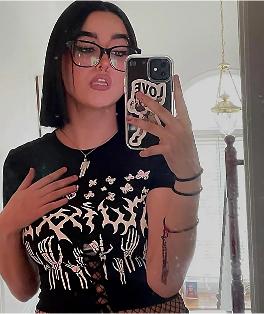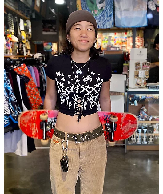 Keep your vibes edgy, and your looks fierce with the SWIXXZ Stage Dive Lace Up black t-shirt. This entirely black top features logo script across the chest paired with outstretched skeleton arms and tie front detailing for a fun and funky look for sure.