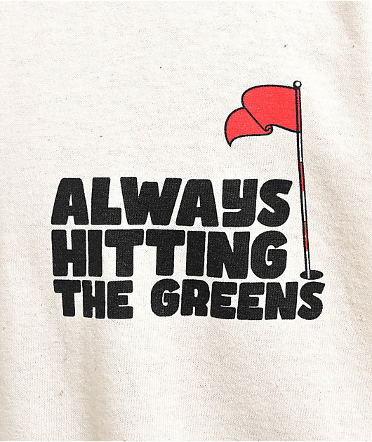 From The High & Mighty comes the Fourrrr Twenty t-shirt in a white colorway with a classic tee fit. This shirt features a screen-printed graphic at the front of a golf ball character with red eyes standing on a golf course with a thumbs up, as well as tex