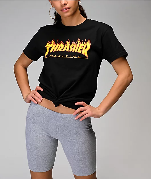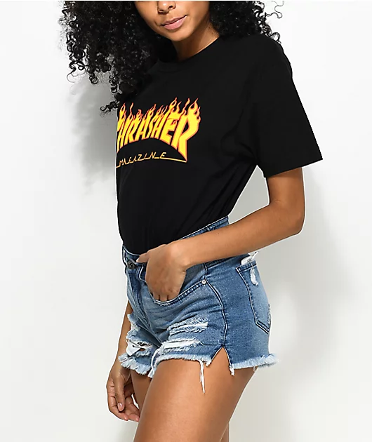 Thrasher Flame Logo Boyfriend Fit Black T-Shirt
