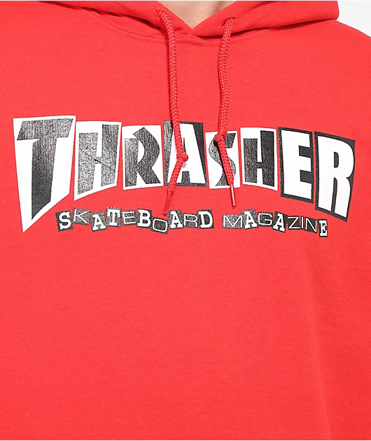 Baker Skateboards teams up with Thrasher Magazine for a co-branded spin on a classic hoodie. This red Thrasher hoodie is made from a midweight cotton-poly blend, and has a hood with adjustable drawstring and kangaroo pouch pocket. Screen-printed on the fr