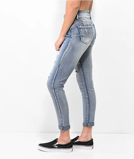 In an indigo denim constructed come these high rise skinny jeans from Thrill Jeans. These unique denim pants hug and lift your frame in just the right spots to give you the best look possible, offering a capris style fit that stops just before it hits the