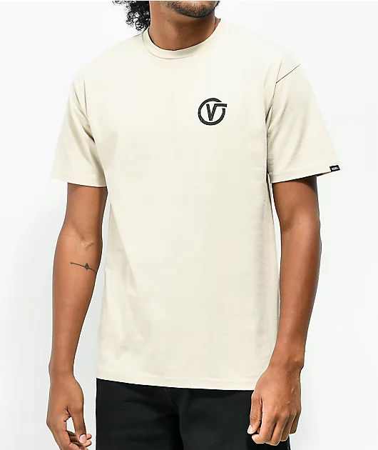 Lend some understated flair to your ‘fits with the Cross Code oatmeal t-shirt from Vans! Graphics at the back of this tan-toned tee depict a pair of crossed fingers, a heart pierced with an arrow, a skull, and a broken skateboard, with a Vans logo located