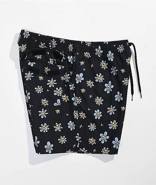 With trippy smiling flower graphics sublimated throughout, the Mixed Volley shorts from Vans come in a black colorway with an above knee cut. Perfect for casual wear or a trip to the beach, the Vans board shorts are made of moisture-wicking sueded polyest