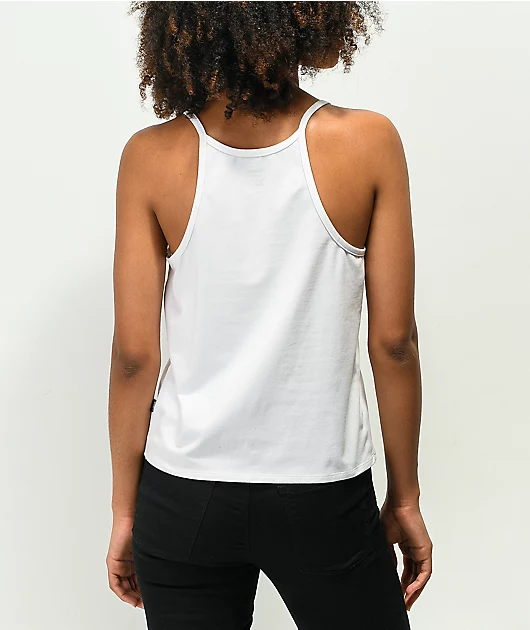 Throw some laid-back vibes into any look with the Pick Peace white cami tank top from Vans! This white tank top sports a couple of daisies at the chest, complete with peace signs within, adding a relaxing mood to any wardrobe.