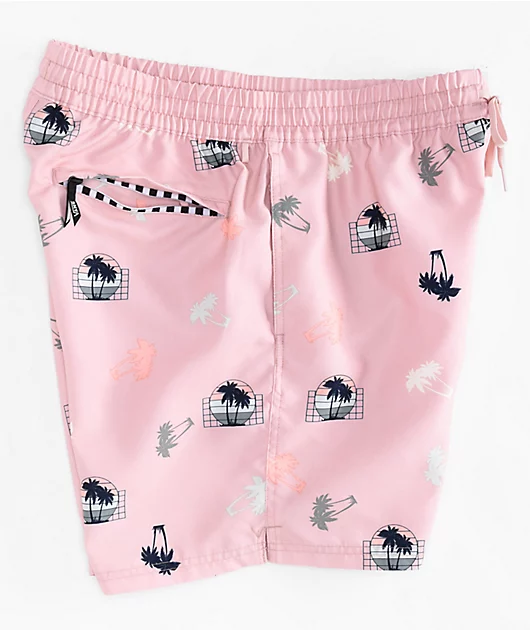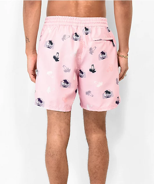 Coming in a rose colorway, the Vans Primary board shorts feature an 80’s-inspired beach pattern with palm trees throughout. Made from smooth moisture-wicking material, the Vans hybrid shorts are finished with a drawstring adjustable waistband plenty of st
