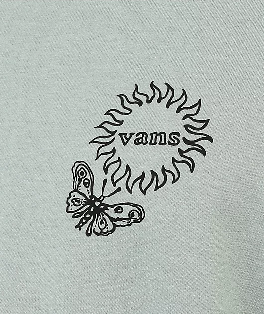From Vans comes the Too Far From The Future long sleeve t-shirt in a green colorway, showing off the brand name left of chest with a graphic of a butterfly for a whimsical look. Script down the right arm of this longsleeve tee reads \”The Future!\” while on