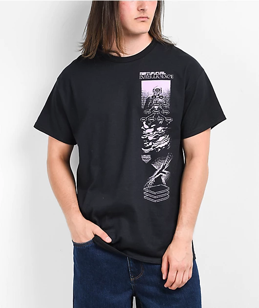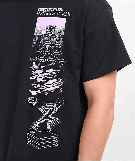 The AI t-shirt from Vitriol comes in a black colorway, featuring pink retro futuristic graphics on the front and back. Made from breathable midweight cotton, the Vitriol t-shirt is finished with a screened tag and \”Artificial Intelligence\” messaging for a