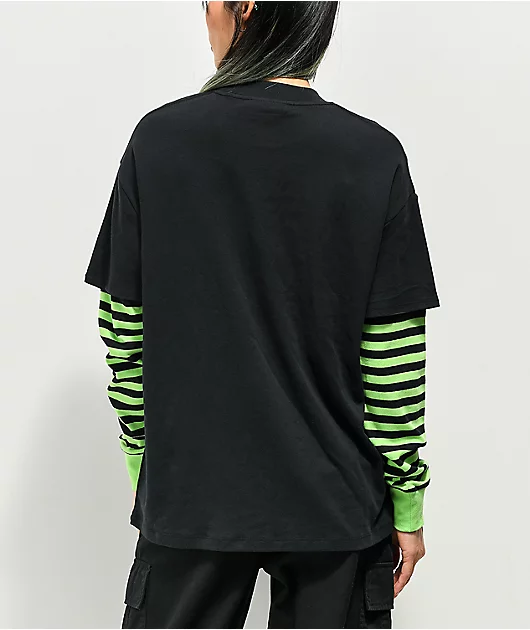 Vitriol Bixie Black & Green Layered Long Sleeve T-Shirt