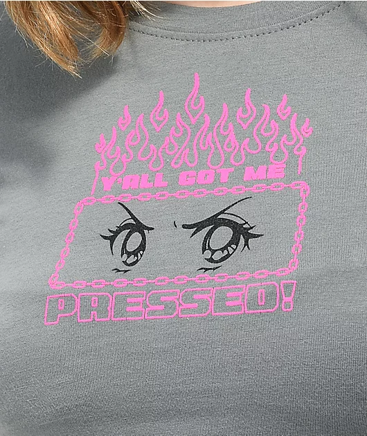 Slide some eye-catching style into any ensemble with Vitriol’s Verity Anime grey crop t-shirt! Soft and stretchy, this top comes constructed from a blend of cotton and spandex, with a cropped hemline and short sleeved keeping it casual and comfortable. Sc
