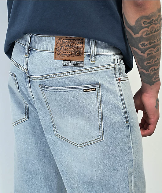 The Volcom Nailer jeans come in a faded light denim colorway with a stylish straight leg and slight tapering. This model has classic button-and-fly closure and a five pocket configuration as well as superior stretch that prevents wear and tear. For an env