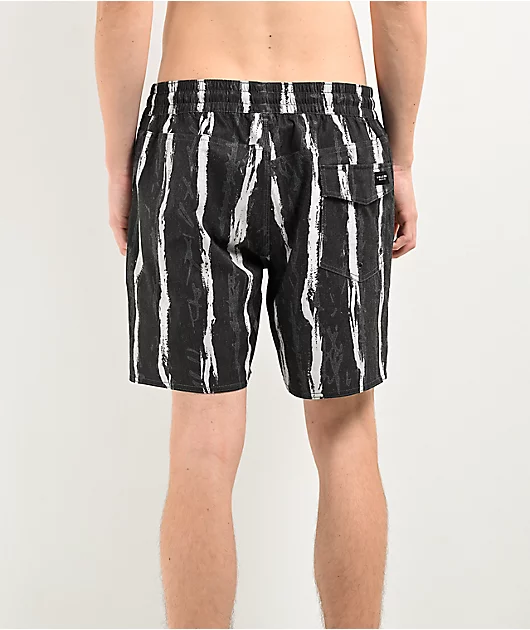 The Hockey Dad board shorts arrive from Volcom in a black colorway with a sublimated sketchbook pinstripe pattern throughout. Built from REPREVE® recycled plastic bottles, the water-resistant swim shorts offer an adjustable drawstring in the elast